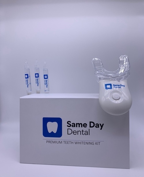 This kit includes everything you’ll need to whiten your smile in as little as 10 minutes. You'll get 3 whitening refills plus our LED accelerator light. Our whitener is 3x faster than normal whitening strips, so you can stop settling for mediocre whitening that never works. We operate our own dental offices, see over 15,000 patients a year, and sell this exact same whitening kit in house, so you can buy with confidence. Whiten your smile in less than a week with our Premium Teeth Whitening Kit.